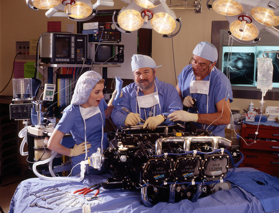 Victor Sloan has a unique philosophy on how aircraft engines should be cared for. One of Victor's customers, a surgeon at the University of California San Francisco made a comment one day that Victor treats customer's engines as though they were coming into a hospital for care. "Your engines get inspected, diagnosed and solutions are determined to put new life into the engine while extending their lifetime in a more efficient manner". This is similar to how patients are treated in medical care facilities. Victor thought that was such a compliment that he asked the surgeon if we could celebrate his thought. We were given permission to take this photo at the surgery center at U.C.S.F.